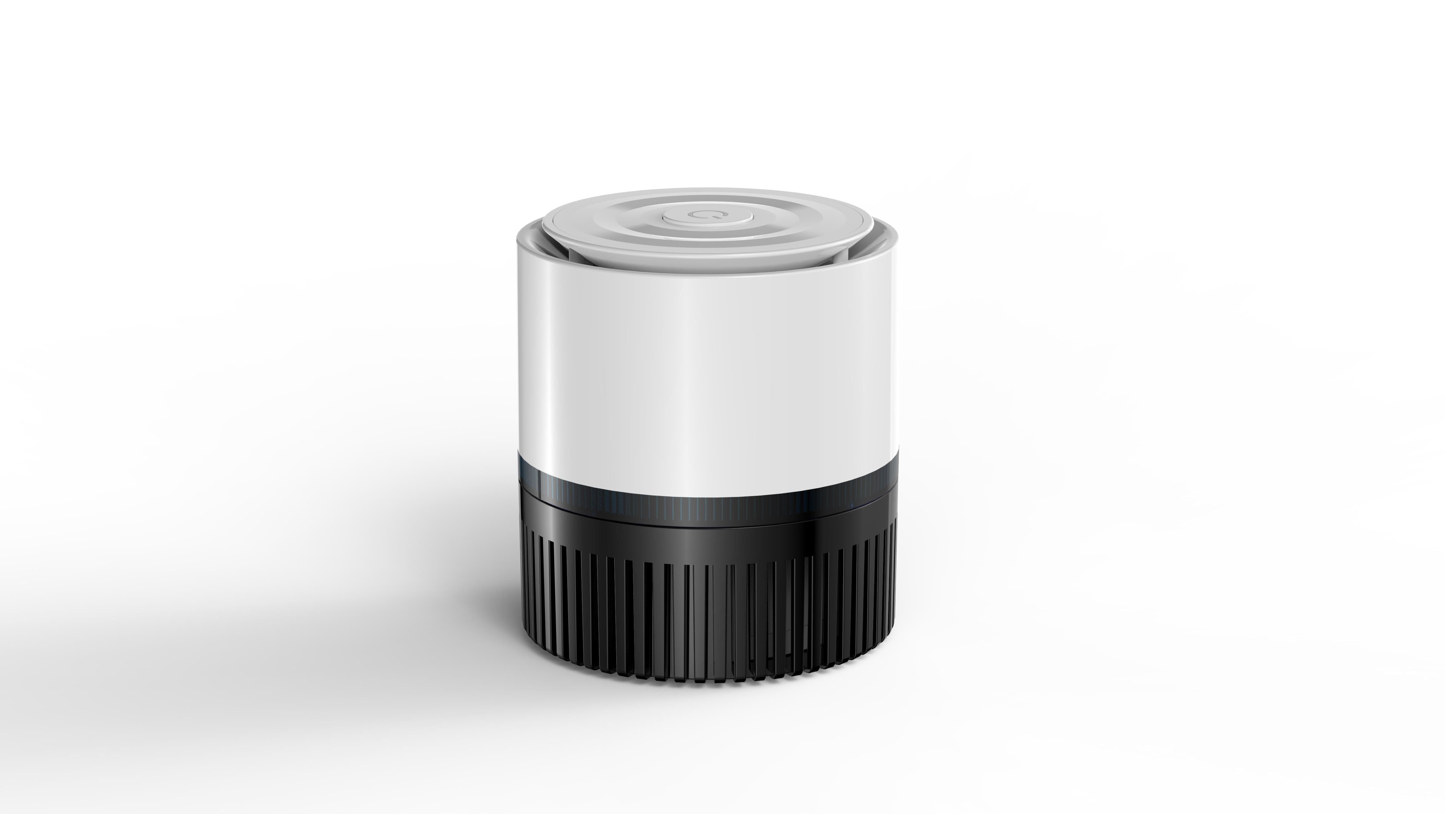 1. This product is one of our desktop air purifier, the body is round, beautiful and generous appearance, white, air inlet on all sides, air outlet above, operation panel at the top. The following figure. |